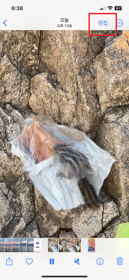 사진앱을 실행 후 편집할 동영상을 선택한다.
