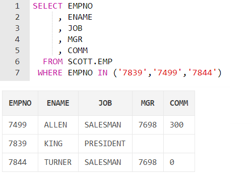 SELECT 7839 empno, 'KING' ename, 'PRESIDENT' job, NULL comm FROM dual UNION ALL