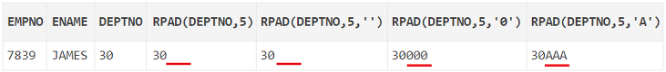 , RPAD(deptno, 5, '0') -- 오른쪽에 '0'을 채움