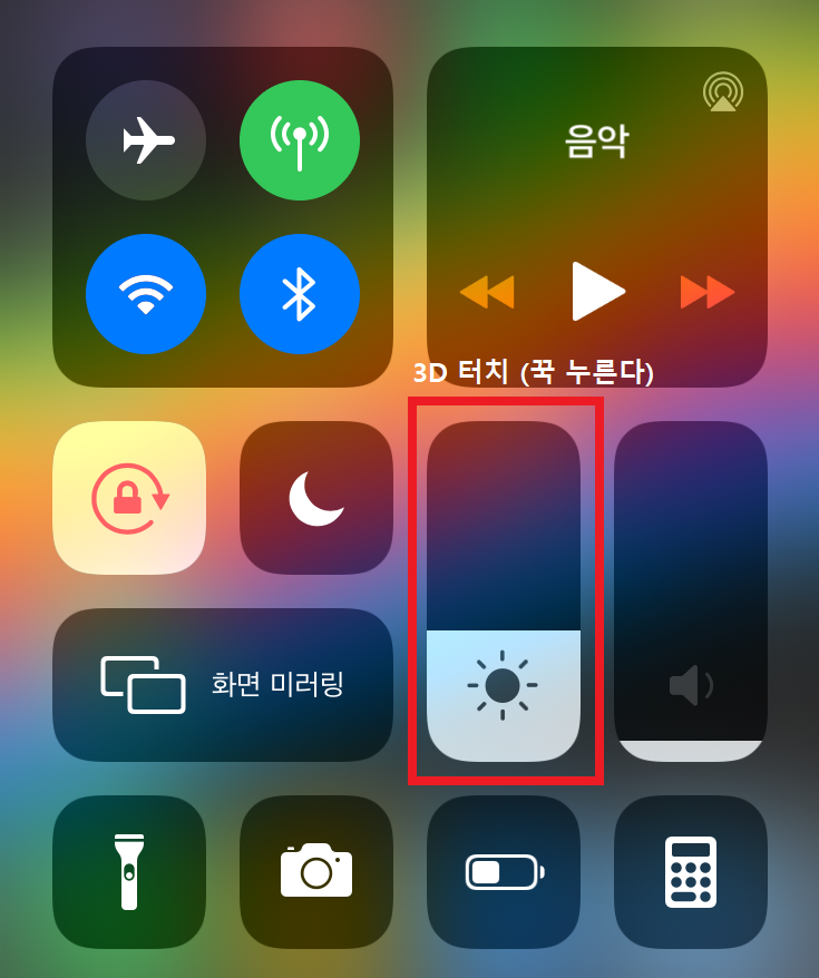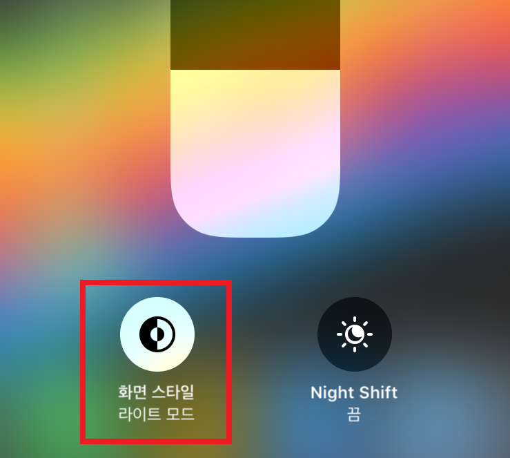 다크모드로 변경하기 위해서는 설정(설정→디스플레이 및 밝기)이나 제어센터(밝기 3D터치) 두 군데에서 설정이 가능하다.