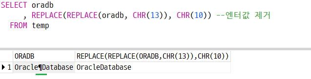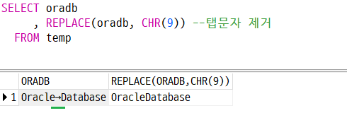 , REPLACE(oradb, CHR(9)) --탭문자 제거