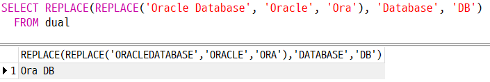 SELECT REPLACE(REPLACE('Oracle Database', 'Oracle', 'Ora'), 'Database', 'DB')
