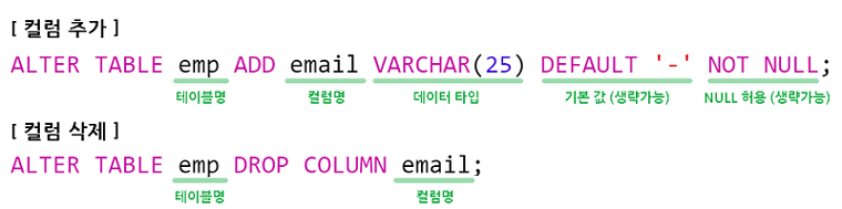 오라클 테이블에 컬럼을 추가하기 위해서는 ALTER TABLE을 사용한다. 컬럼을 추가하면 테이블 컬럼의 마지막 순서에 추가가 되며, 컬럼 순서의 중간에 컬럼을 추가할 수는 없다.