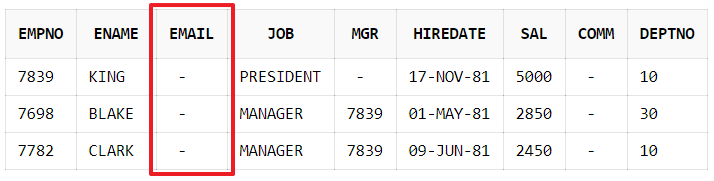 ALTER TABLE emp MODIFY mgr INVISIBLE;