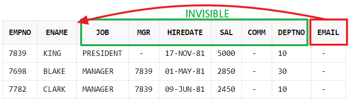 ALTER TABLE emp MODIFY sal INVISIBLE;