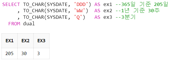 , TO_CHAR(SYSDATE, 'Q') --3분기