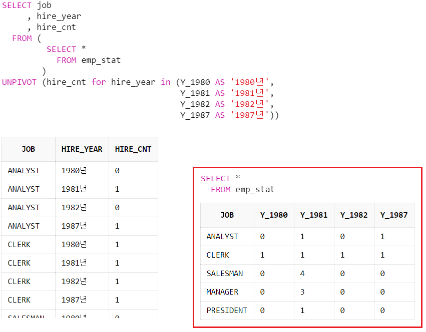 UNPIVOT (hire_cnt for hire_year in (Y_1980 AS '1980년',