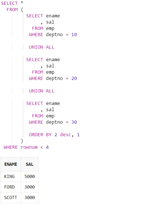위의 쿼리는 연봉 상위 3명을 조회하는 쿼리이다.