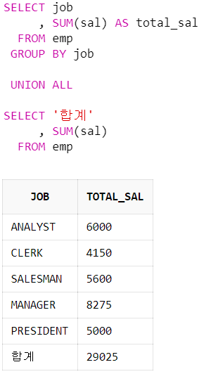 합계를 따로 연산하여 조회 결과에 합치는 용도로 사용할 수 있다.
