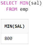 위의 예제는 사원 테이블 전체에서 최저 급여를 조회한 결과이다.