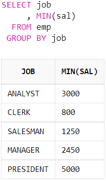 위의 예제는 직군별 최저 급여를 조회한 결과이다.