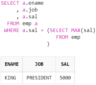 위의 예제는 최고 급여를 받는 직원을 조회한 결과이다.