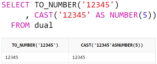 SELECT CAST('12345' AS NUMBER(10))