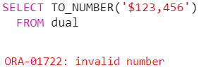, TO_NUMBER('$123456' DEFAULT -1 ON CONVERSION ERROR) AS result2