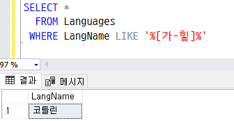 WHERE LangName LIKE '%[0-9가-힣]%'