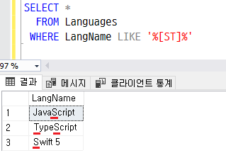 [MSSQL] LIKE 연산자 사용법 (NOT LIKE, 정규식)