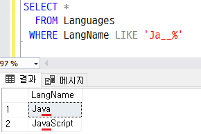 WHERE LangName COLLATE Korean_Wansung_CS_AS LIKE 'Java%'