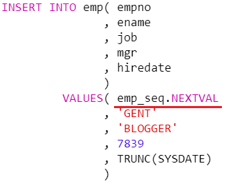 VALUES( emp_seq.NEXTVAL