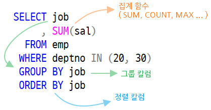 SELECT 절에서 집계 함수를 제외한 칼럼을 GROUP BY 절에 기술한다고 생각하면 된다.