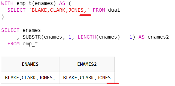 , SUBSTR(enames, 1, LENGTH(enames) - 1) AS enames2