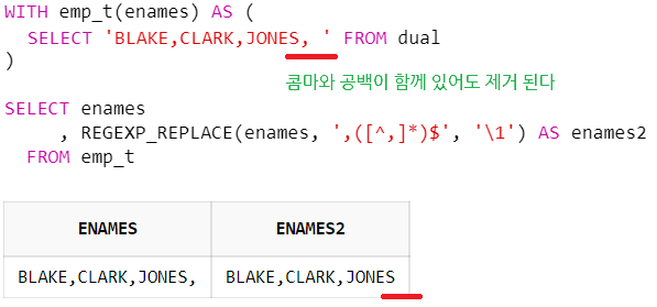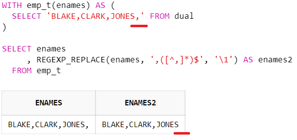 REGEXP_REPLACE() 함수로 마지막 콤마 제거