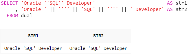 SELECT 'Oracle ''SQL'' Developer' AS str1