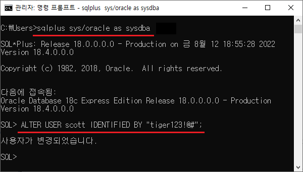 ALTER USER scott IDENTIFIED BY tiger123;