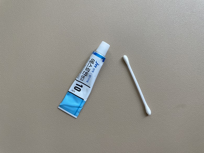 에어팟 프로를 일주일 정도 사용을 하지 않으면 외이도염 증상이 사라진 것 같아서 다시 에어팟 프로를 사용하면 다시 증상이 발생했다. 에어팟 프로를 사용하지 않으면 외이도염 증상이 심하게 발생하지 않아서 병원에는 갈 생각을 하지 못했으며, 약국에 들러서 외이도염에 사용할 수 있는 연고를 구매하였다.