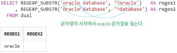 SELECT REGEXP_SUBSTR('oracle database', '^oracle') AS regex1
