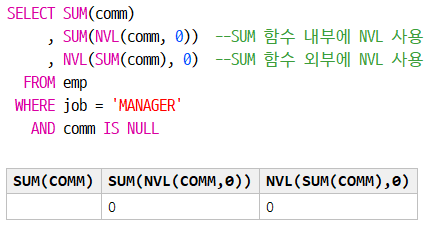 , NVL(SUM(comm), 0) --SUM 함수 외부에 NVL 사용