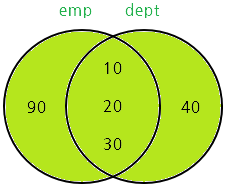 deptno 칼럼으로 조인된 데이터는 한 행으로 표시되고, 조인되지 않은 emp 테이블의 deptno = 90과 dept 테이블의 deptno = 40은 별도의 행으로 출력된 것을 확인할 수 있다.