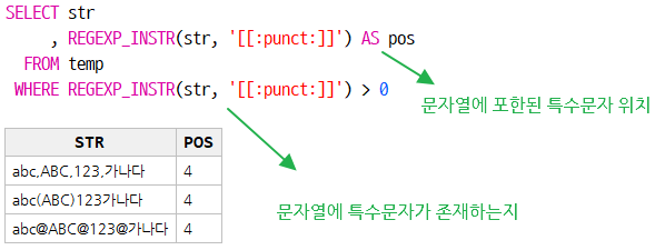 REGEXP_INSTR 정규식 함수를 사용하여 특수문자 포함 여부를 조회할 수 있다.