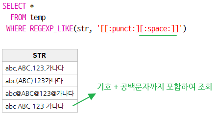 WHERE REGEXP_LIKE(str, '[[:punct:][:space:]]')