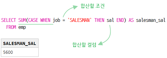 SELECT SUM(CASE WHEN job = 'SALESMAN' THEN sal END) AS salesman_sal