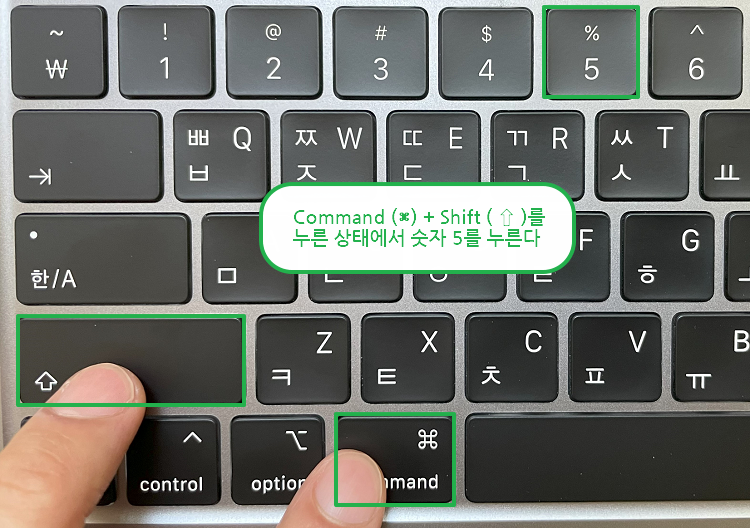 - Command (⌘) + Shift ( ⇧ ) + 5 를 누른다
