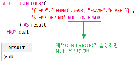 | ON EMPTY | JSON 경로에 값이 비어 있을 때의 동작을 지정한다. |