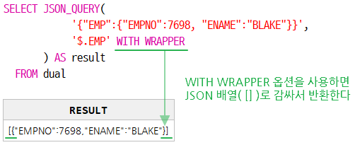WITH WRAPPER 옵션을 사용하면 반환 값을 JSON 배열( [] )로 감싸서 반환한다.