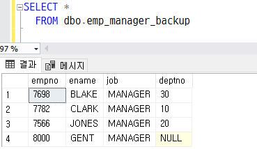 백업 테이블에 데이터가 저장되어 있는 것을 확인할 수 있다.